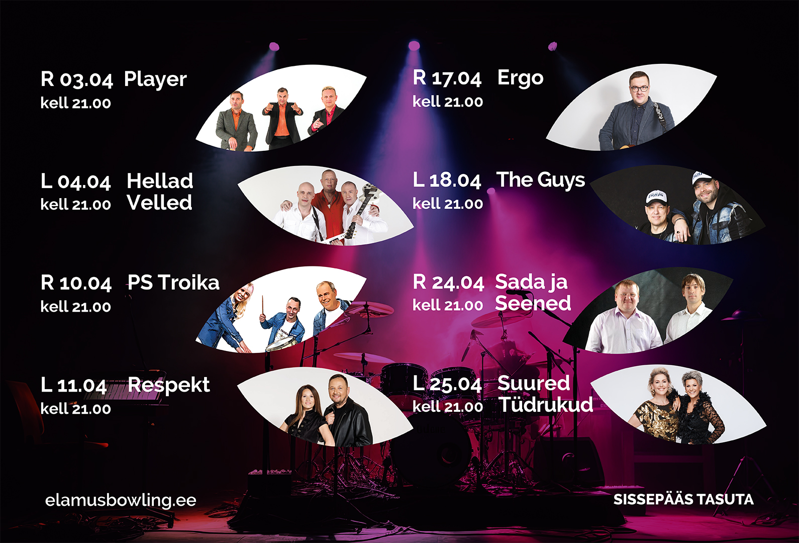 Reedeti ja laupäeviti on Elamus Bowling & Pubi’s elav muusika- ansamblid, soolo esinejad, DJ. Bandid alustavad 21.00